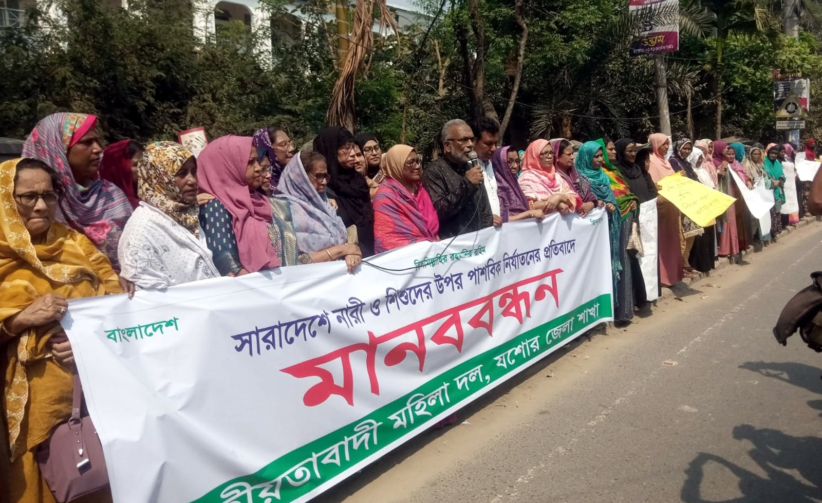 সারাদেশে নারী ও শিশুদের উপর পাশবিক নির্যাতনের প্রতিবাদে মানববন্ধন কর্মসূচি পালন করেছে যশোর জেলা মহিলা দল। সোমবার (১০ মার্চ ) প্রেসক্লাব যশোরের সামনে অনুষ্ঠিত মানববন্ধনে বক্তারা বলেন, ধর্ষণ নারী নির্যাতন দেশে নতুন কোন ঘটনা নয়। বিগত ১৬ বছর ফ্যাসিস্ট আওয়ামী লীগের সময় এটি প্রকট আকার ধারণ ও ব্যাপকতা লাভ করে। সেই সময়ে প্রতিটি নৃশংস ঘটনার সাথে ফ্যাসিস্ট আওয়ামী লীগের দোসর যুবলীগ, ছাত্রলীগ সন্ত্রাসী জড়িত। সেদিন বিএনপি ছাড়া কেউ এই সন্ত্রাসীদের বিরুদ্ধে প্রতিবাদ করার সাহস পায়নি। এমনকি ভুক্তভোগীরা আইনশৃঙ্খলা বাহিনীর কাছে প্রতিকার চেয়েও কোন প্রতিকার পায়নি। সেই সাথে আদালতের দীর্ঘসূত্রতার কারণে ভুক্তোভোগীরা বিচার না পেয়ে বিচারের আশা ছেড়ে দিয়েছেন।