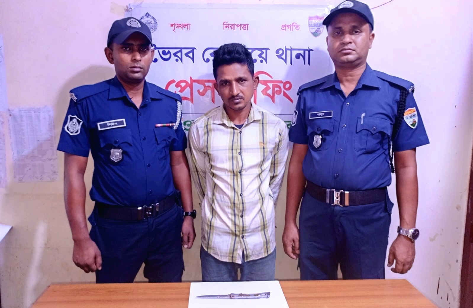 পুলিশ জানান, রবিবার সন্ধ্যায় ভৈরব মেঘনা পুরাতন রেলওয়ে ব্রিজ এলাকা থেকে ধারালো ছুরিসহ পলাতক জসিমকে গ্রেফতার করা হয়। সে ব্রাহ্মণবাড়িয়ার আখাউড়া উপজেলার নুরপুর মসজিদপাড়া এলাকার ফরিদ মেম্বারের বাড়ির ভাড়াটিয়া আব্দুল আওয়াল মিয়ার ছেলে।