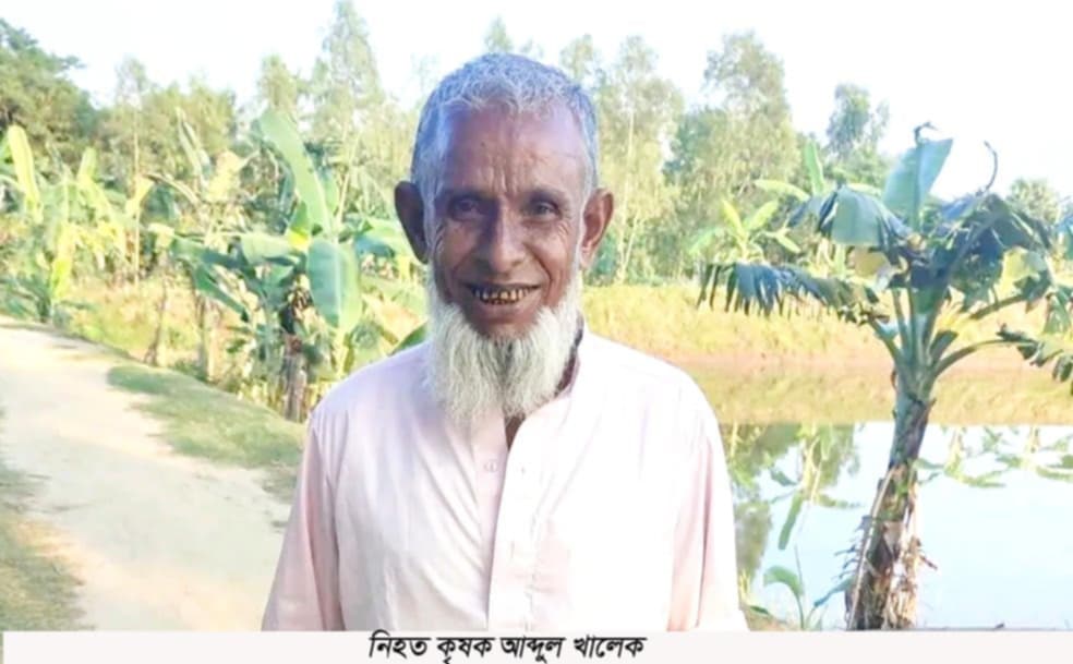কৃষক আব্দুল খালেক বাড়ি থেকে কিছুটা দূরে জমিতে ধান কাটার কাজ করছিলেন এবং দিন-ভর থেমে থেমে বৃষ্টি ও বজ্রপাতের ঘটনাও ঘটেছে। ইউপিসদস্য ও স্থানীয় সূত্রে জানা যায়, বিকেলে ধান ক্ষেতে কৃষক খালেকের নিথর দেহ পড়ে থাকতে দেখে স্থানীয় লোকজন। সে সময় তারা চুল ও পিঠের বিভিন্ন অংশে পোড়া চিহ্ন দেখে বুঝতে পারে তিনি বজ্রপাতে মারা গেছেন।