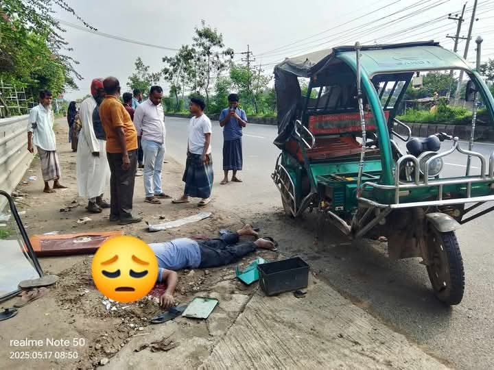 মোবারক হোসেন ভালুকার ভান্ডাব মুন্সিভিটা গ্রামের বাসিন্দা এবং মৃত কেরামত আলীর ছোট ছেলে। তিনি পেশায় একজন ব্যাটারিচালিত অটোরিকশা চালক ছিলেন। প্রত্যক্ষদর্শীরা জানান, হঠাৎ করে অটোরিকশার নিয়ন্ত্রণ হারিয়ে পাশের গার্ডরেলের সঙ্গে ধাক্কা লাগে। এতে মোবারক হোসেন ঘটনাস্থলেই মারা যান।