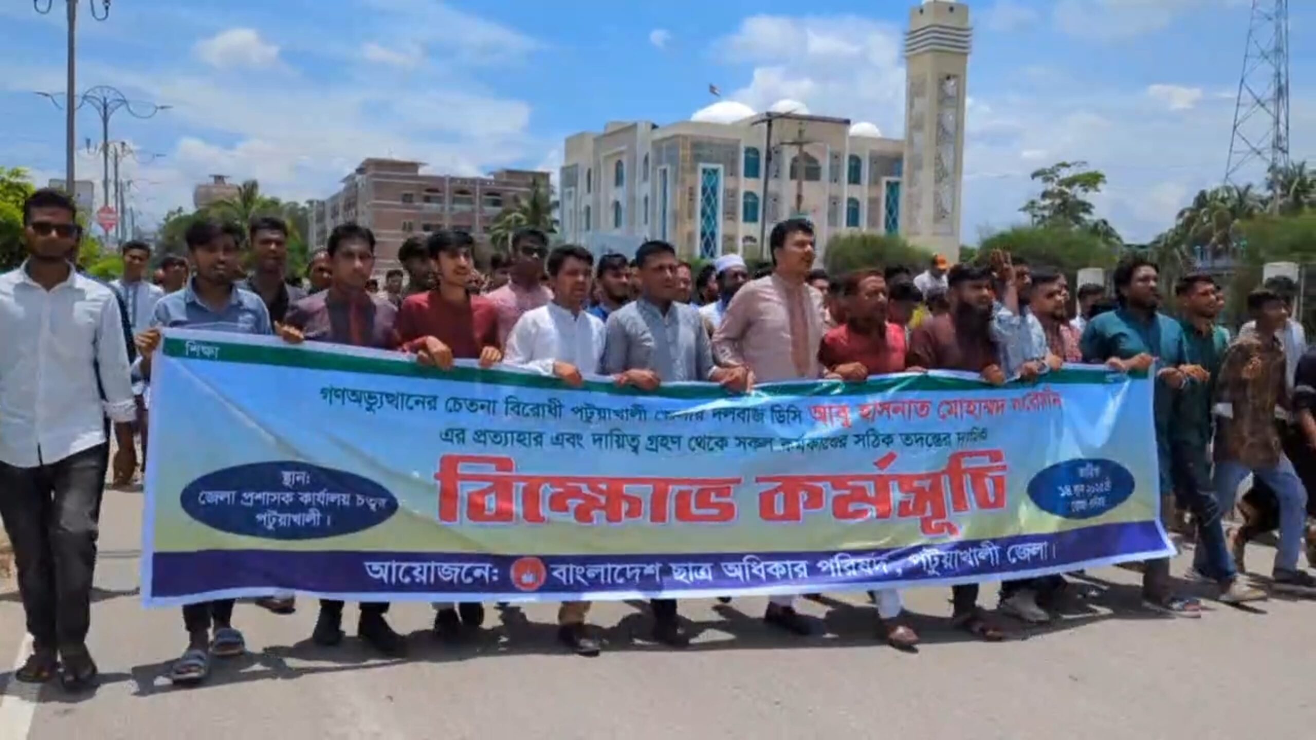 পটুয়াখালীর জেলা প্রশাসক আবু হাসনাত মোহাম্মদ আরেফীন এর প্রত্যাহার এবং দায়িত্ব গ্রহণ থেকে সকল কর্মকাণ্ডের সঠিক তদন্তের দাবিতে বিক্ষোভ মিছিল ও জেলা প্রশাসকের কার্যালয় ঘেরাও কর্মসূচী পালন করেছে ছাত্র অধিকার পরিষদ পটুয়াখালী জেলা শাখা।